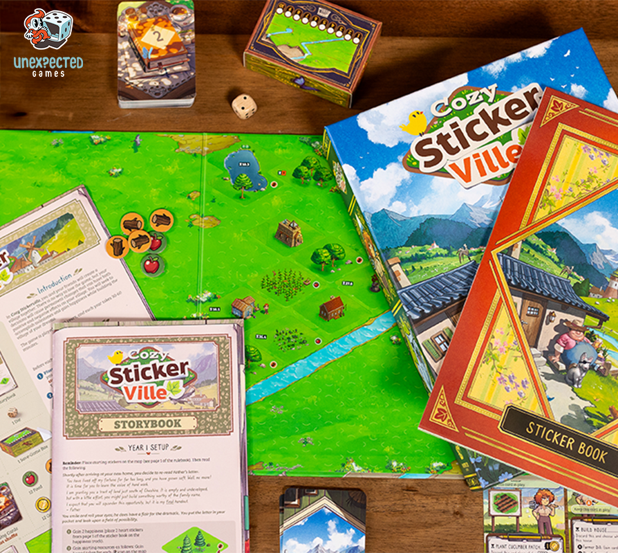 Many legacy games rely on complex systems, branching rulebooks, and intricate tracking systems, often requiring the same group of players to be present every time. Cozy Stickerville keeps things intentionally simple and flexible.